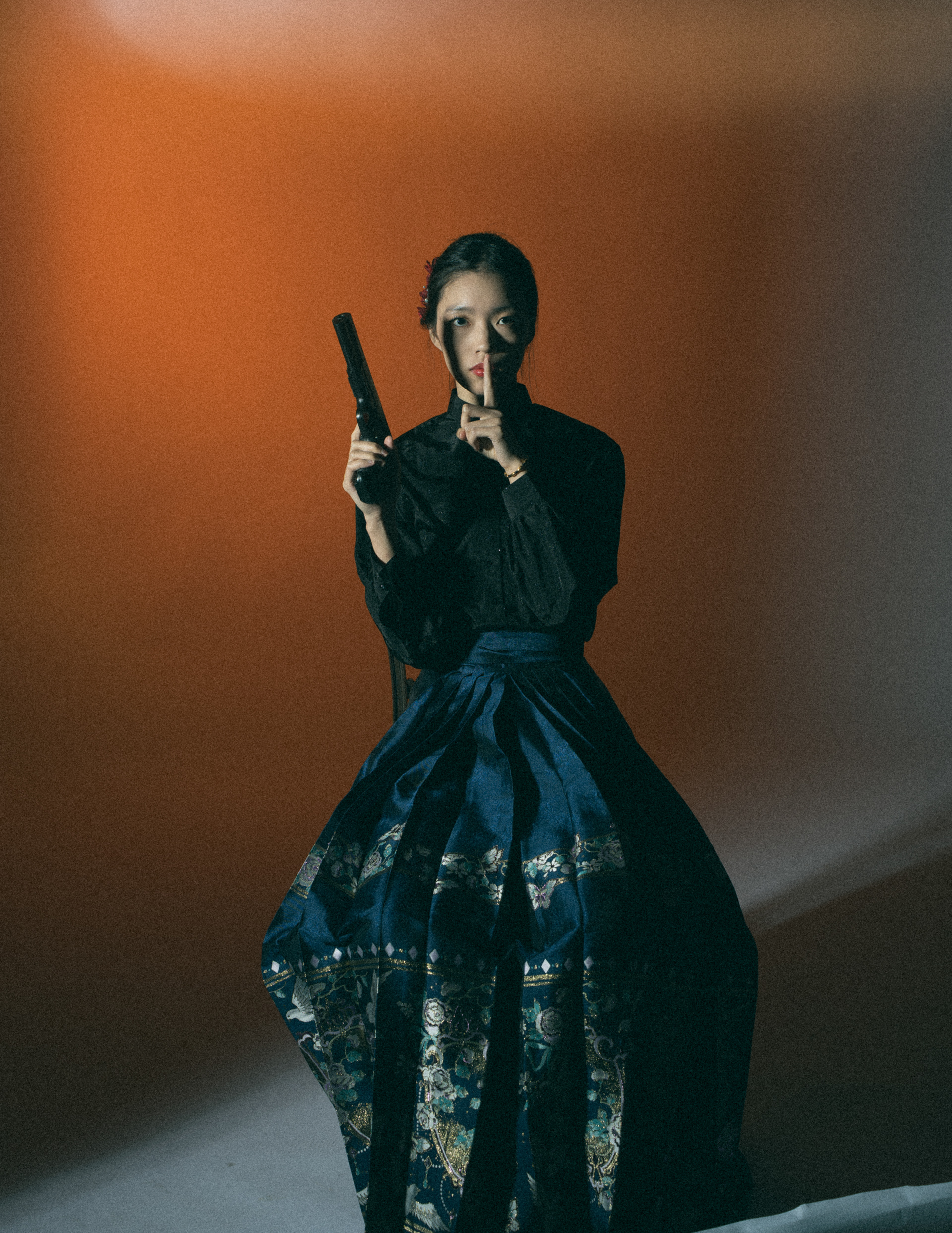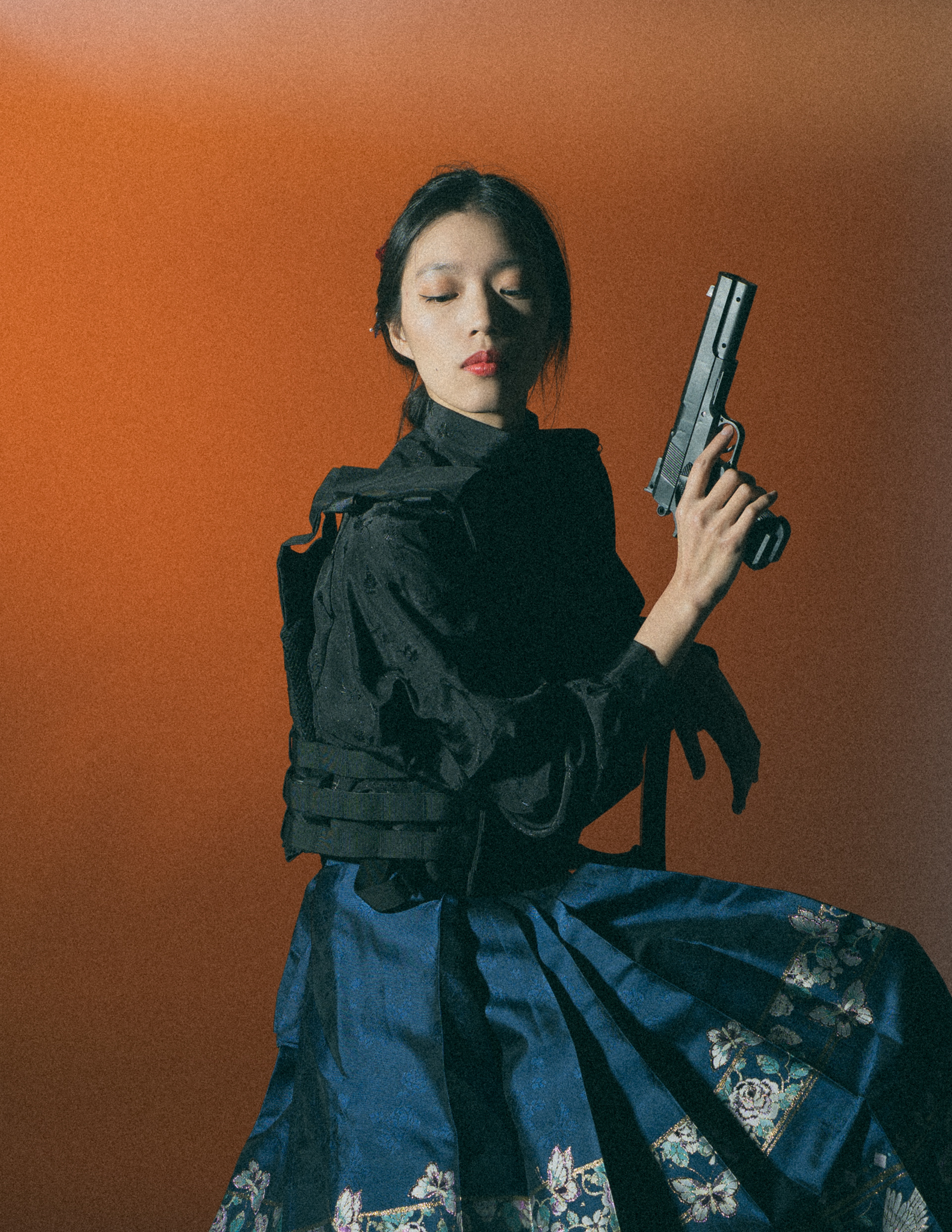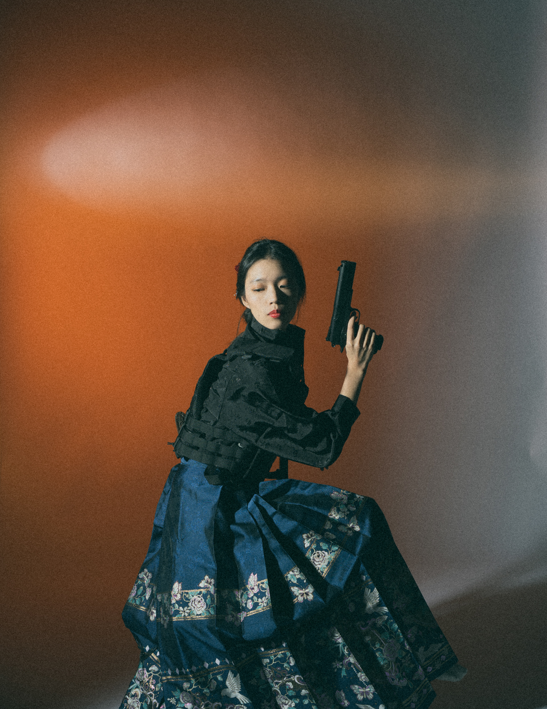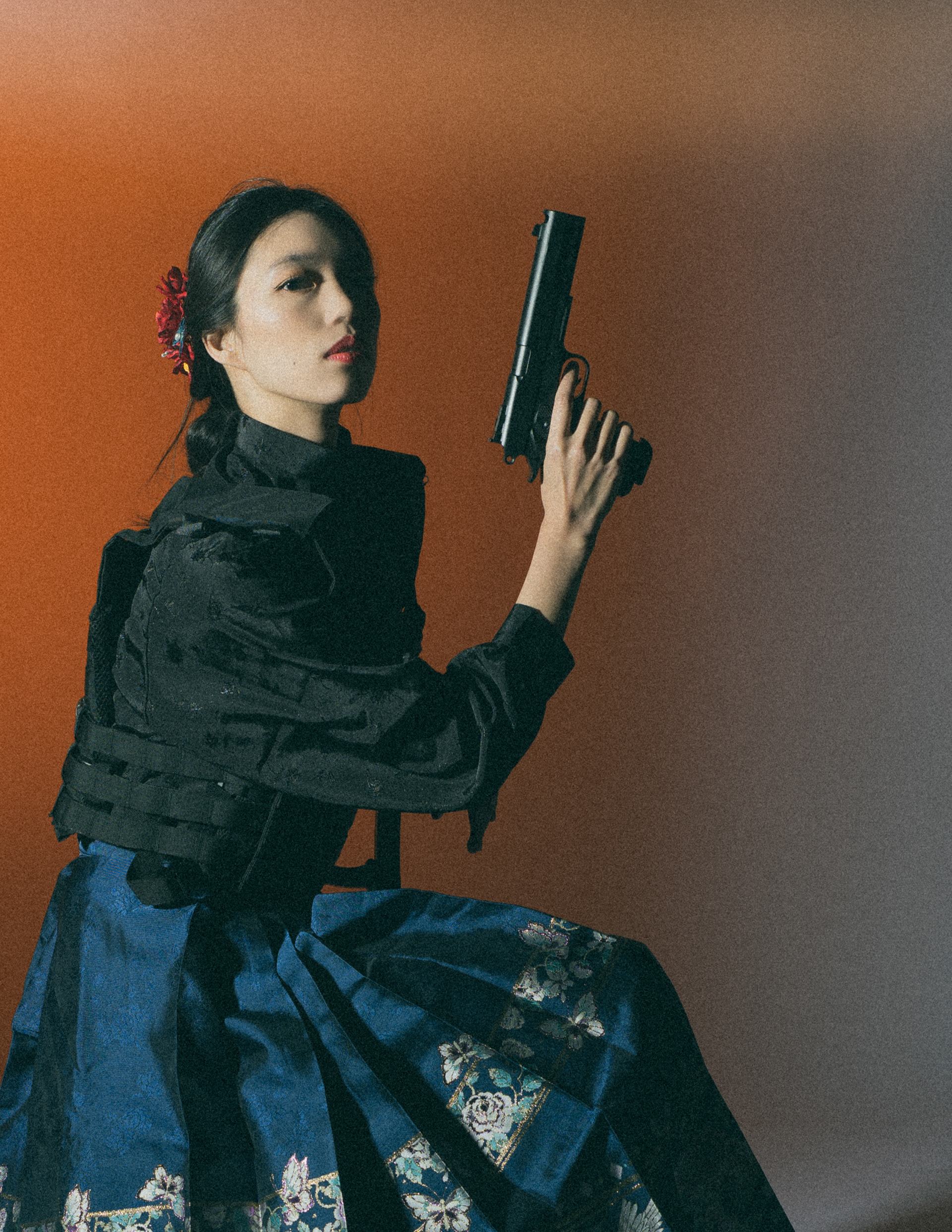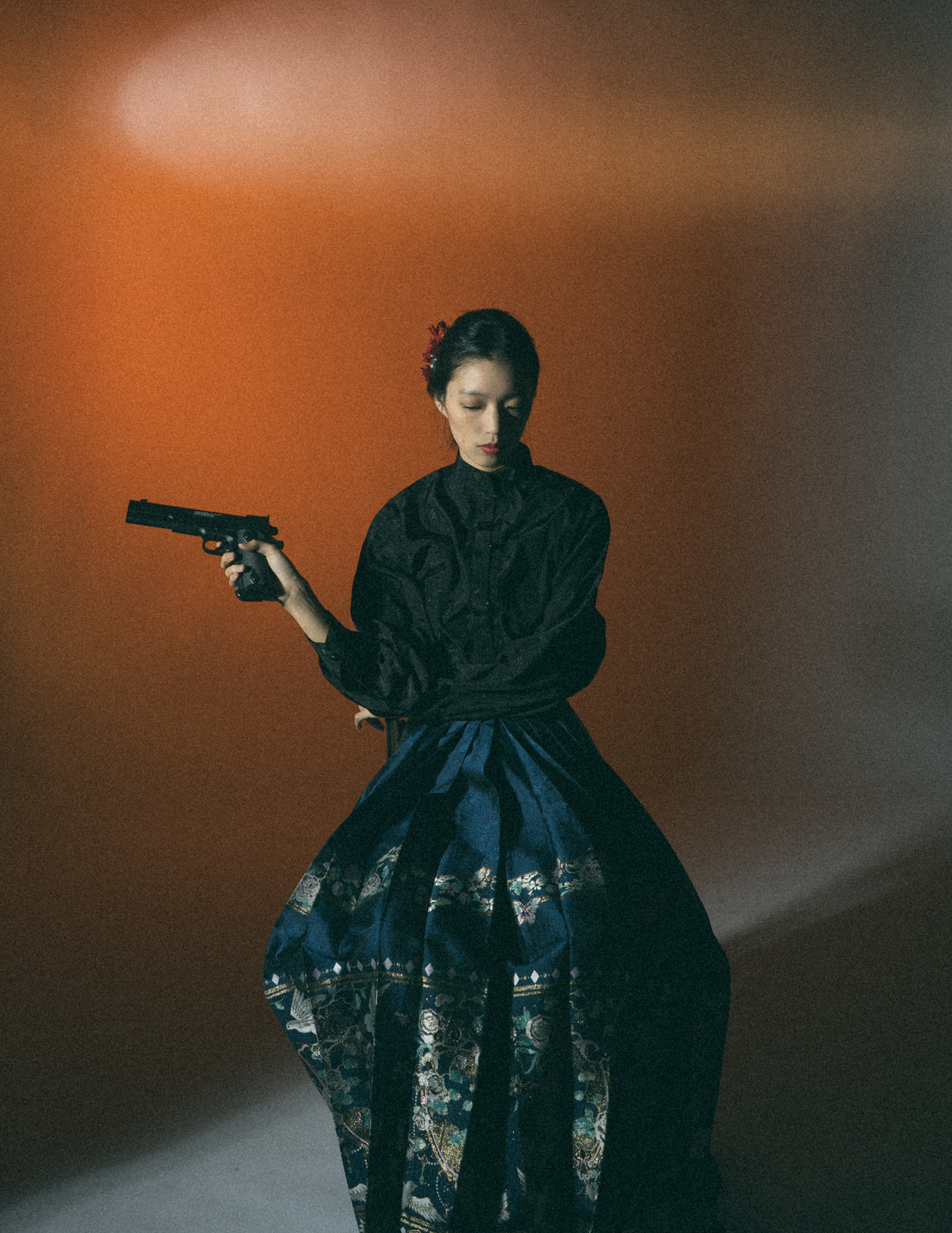 Set against a fading horizon, the image explores inherited authority rather than overt violence. Traditional dress, ceremonial posture, and modern weaponry coexist in quiet tension, where power is not asserted through action, but through restraint. The work reflects on how identity, discipline, and silence are passed down, transformed, and quietly enforced.
